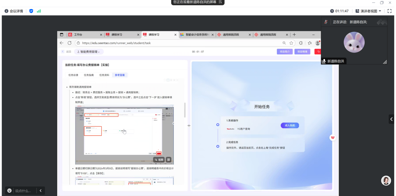 在上午的培训中,陈自洪对用友YonSuite智能会计信息系统平台进行了全面且深入的介绍。从系统的整体架构、核心技术,到其如何凭借财务云服务平台完成传统会计到事项会计的数智化转型,以及在智能决策等方面的突出优势,均进行了深入讲解,并结合实际企业案例,生动展示了该平台在数智化财务领域的广泛应用场景,让老师们对平台有了直观且清晰的认知。