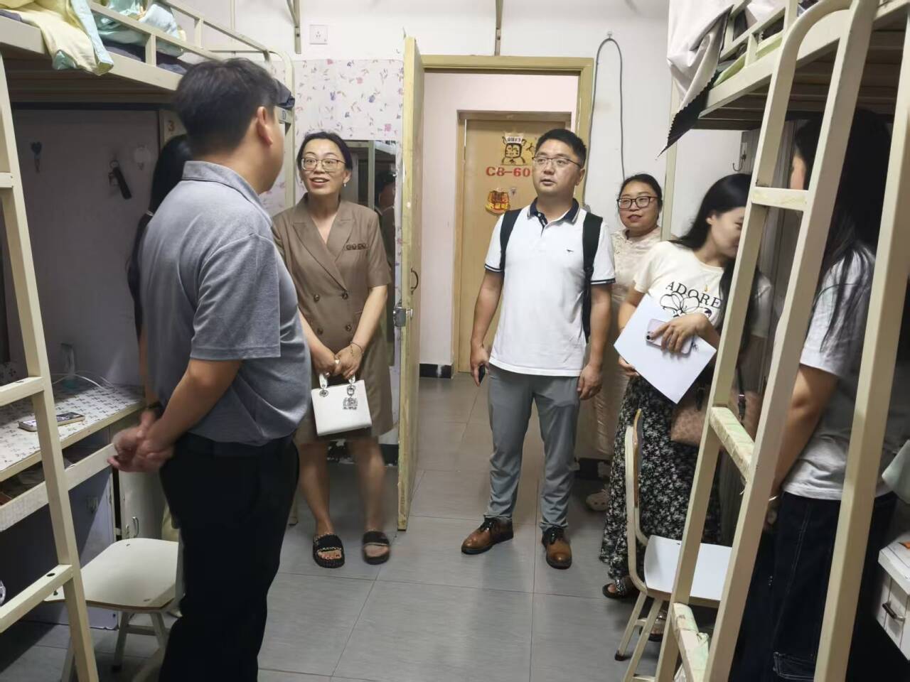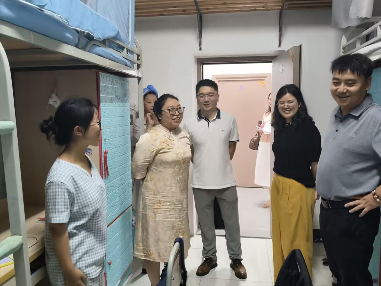 为深入了解2025级新同学的生活适应状况,倾听新生的需求与建议,传递学校的关怀与温暖,9月7日晚,304永利集团官网入口校长助理李锐和学校文化与教育学院分党委书记邓毅,副院长史海静、羊媛和分党委副书记王丹、院长助理徐哲以及学院新生辅导员,共同深入新生寝室走访送关怀。