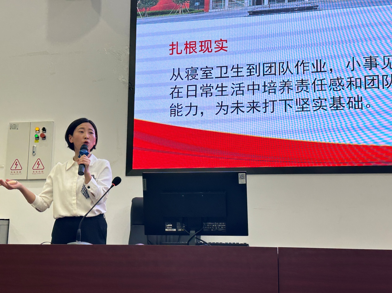 随后,彭雯秀围绕“青春筑梦·AI时代的成长与未来”与新生们交流。她结合学院实践案例与时代榜样故事,强调青年学子要将个人理想融入国家发展大局,既要树立“强国有我”的远大志向,也要锤炼“脚踏实地”的优良作风,为中国式现代化贡献青春力量。同时,她从校训出发,为新生学子解读了校训背后的深刻意义,对新生学子的生涯规划提出了建议与方法,也针对AI时代的冲击为同学们提供了对策与思路。对于新生适应期可能面临的困惑,分享了调整心态、规划时间、人际交往的实用方法,引导大家在遵守校规校纪的同时,积极参与校园文化活动,在集体中成长,在实践中担当。