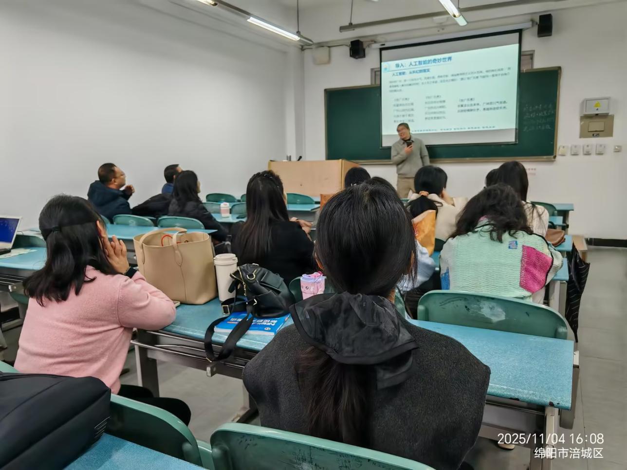 在“去‘魅’:人工智能的本质解码”的内容中,张广兵通过生动的案例和详实的数据,揭示了人工智能技术的内在逻辑和运作机制,帮助大家拨开迷雾,看清其真实面貌。他强调,只有深刻理解人工智能的本质,才能更好地利用这一技术推动教育的创新发展。讲解“去‘忧’:人工智能引发的教育变革”环节,张广兵分析了人工智能给传统教育模式带来的挑战与机遇。他指出,随着技术的不断进步,教育方式正在发生翻天覆地的变化,而如何适应这种变化,成为了每一位教育工作者必须面对的问题。提及“去‘惑’:人工智能助力教学创新”,他分享了多个成功案例,展示了人工智能如何在个性化学习、智能评估、在线互动等方面发挥巨大作用,极大地提升了教学效果和学生的学习体验。这些实例让在场的老师们深受启发,纷纷表示受益匪浅。最后,在“去‘粕’:人工智能教学应用建议”相关内容中,张广兵提出了一系列切实可行的策略和建议,指导教师们如何有效整合人工智能资源,优化课程设计,提高教学质量。他的建议既具有前瞻性又不失操作性,为参会者提供了宝贵的参考。