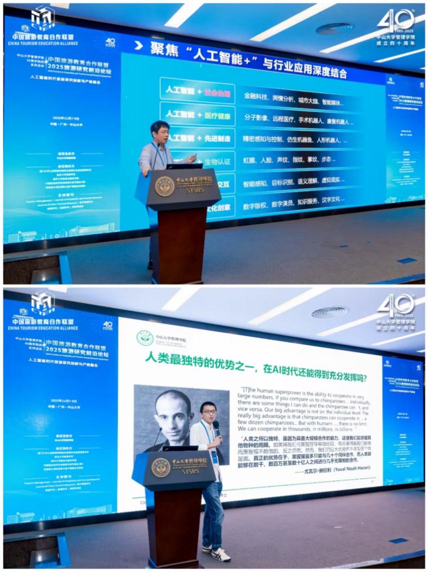 本届论坛以“人工智能时代旅游研究创新与产教融合”为主题,汇聚了来自全国众多高校与业界的知名专家学者,共同探讨旅游研究的前沿动态与未来趋势。在为期两天的会议中,与会代表通过主旨演讲、分论坛报告等多种形式,展开了深入且富有成效的学术交流。