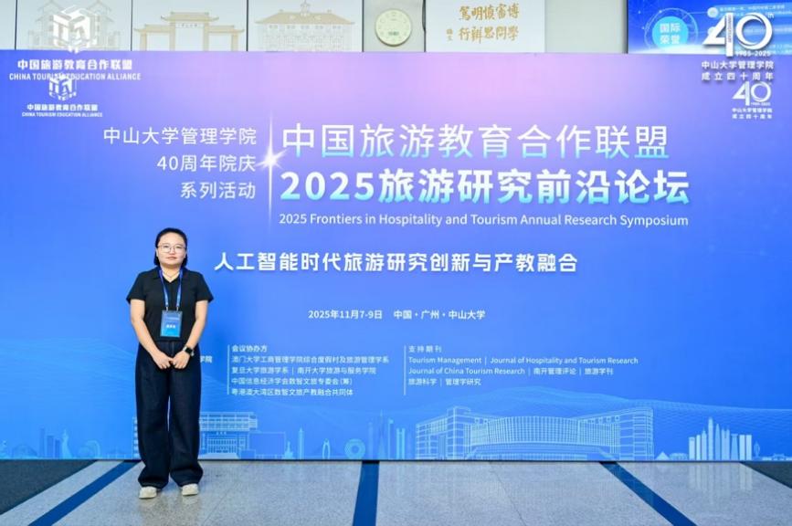 11月7日至9日,中国旅游教育合作联盟·2025旅游研究前沿论坛在广州中山大学成功举办。本次论坛由中国旅游教育合作联盟发起、中山大学管理学院主办,澳门大学工商管理学院综合度假村及旅游管理学系、复旦大学旅游学系、南开大学旅游与服务学院协办。现代管理学院易梦洁老师应邀参会,并在分论坛上就其研究成果进行了专题论文分享。