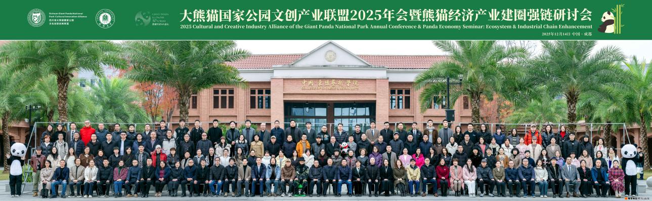 12月14日,大熊猫国家公园文创产业联盟2025年会暨熊猫经济产业建圈强链研讨会在成都大学举行。学校艺术与传媒学院院长李文波、大熊猫文化创意产业学院院长毕飞、教师罗天羽携优秀学生代表受邀参与本次大会。
