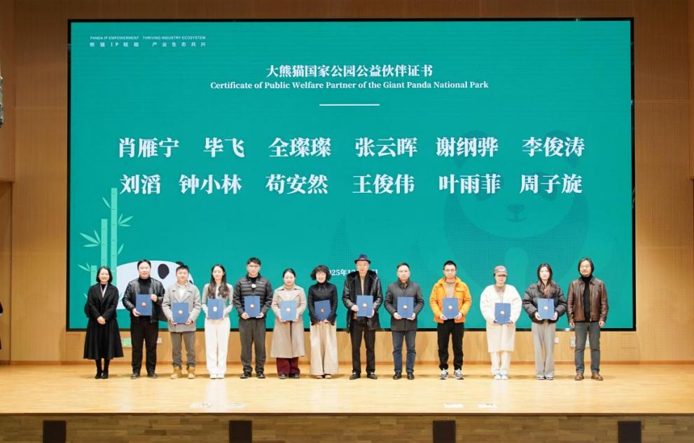 同时,学院大熊猫文化创意产业学院院长毕飞获得“大熊猫国家公园公益巡讲公益伙伴”称号。基地花花、熊猫经济50人论坛、熊猫家园・大熊猫文化创意大赛、RUARUAPANDA脱颖而出,获评年度大熊猫超级IP。