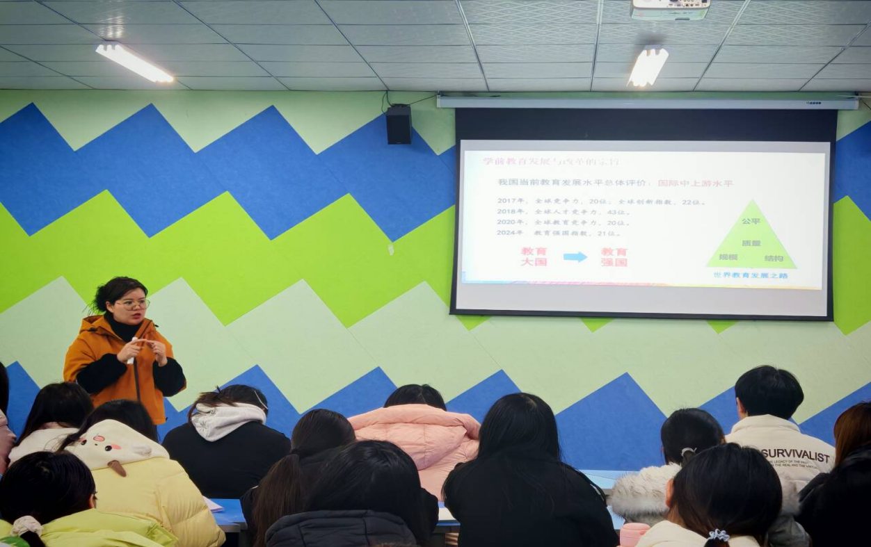 为深入探讨学前教育发展现状与政策导向,帮助学生把握行业发展趋势,明确专业学习方向,12月18日下午,文化与教育学院团总支宣传部、文化与教育学院学生第二社区在三教声乐室成功举办了第四期面对面座谈会。本次座谈会以“幼儿教师专业发展和职业规划”为主题,特邀文化与教育学院副院长、天府实验幼儿园园长羊媛担任主讲嘉宾,文化与教育学院团学彭金艳老师及38名文化与教育学院学生共同参与。