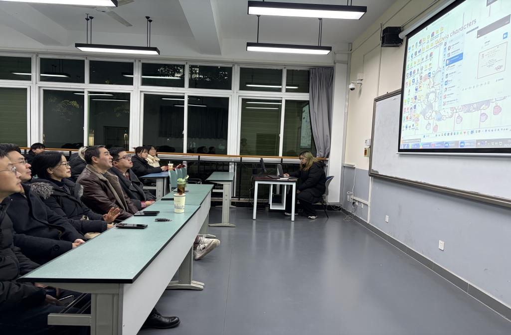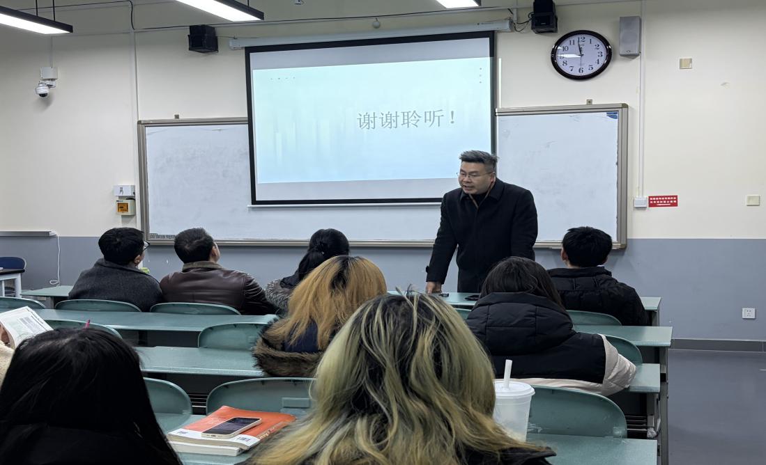 12月23日晚,一教1104教室内气氛热烈。2025年秋季学期英语创新班优秀成果展示汇报会正式拉开帷幕。文化与教育学院副院长张维、语言文学系主任周忠杰,应用语言学中心主任兼英语创新班班主任郭家宏,语言文学系教师赵红梅、王祥熙莅临现场观摩。