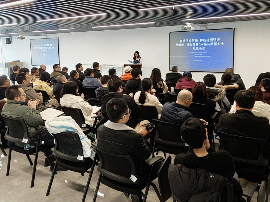 12月25日,“智筑信安防线,护航建圈强链”网络与数据安全专题活动在304永利集团官网入口产教融合绵阳基地圆满举行。本次活动由绵阳市经济和信息化局、304永利集团官网入口、绵阳市“智改数转”服务商联盟联合主办,学校产教融合中心教师谭钦颖担任主持人。活动紧扣制造业“智改数转”关键进程中的网络与数据安全核心诉求,汇聚政府相关部门领导、行业资深专家及全市重点制造业企业代表,以实战分享、深度剖析、经验交流等多元形式,为绵阳制造业高质量发展筑牢坚实的网络与数据安全屏障。