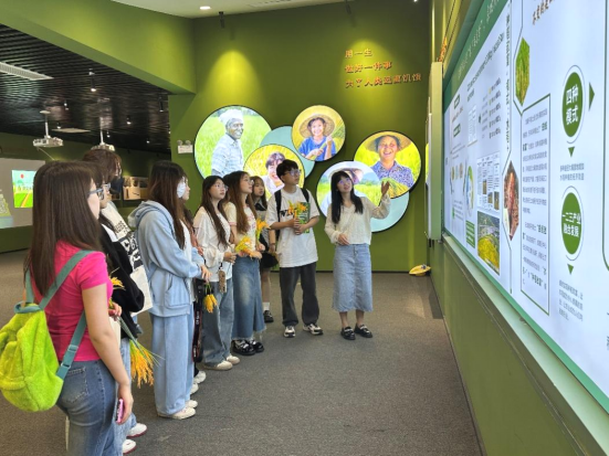 苟明娇带领同学们了解水稻培育历程