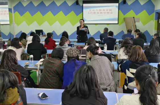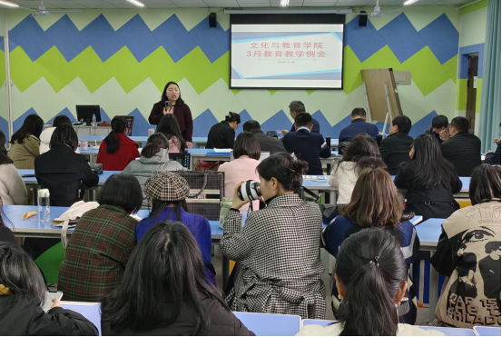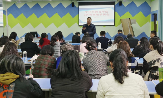 3月19日下午,文化与教育学院在三教声乐室召开了3月教育教学工作会议。学院执行院长史正刚、党总支书记邓毅、副院长张维、史海静、院长助理羊媛及全体教职工参加。