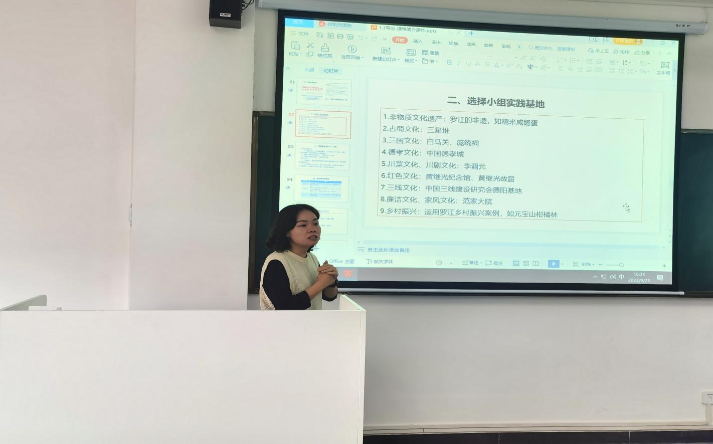 叶璇以“如何开展实践教学”为主题作了交流分享。她指出,教学的主要任务之一是要做到理论联系实际,让教学成果服务于社会。她以《马克思主义基本原理》课程为例,讲解了该课程开展实践教学的主要方式,包括实践基地多元化、实践成果呈现形式的多样化等,并介绍了小组课堂展示的过程与考核,以此来实现思政课理论教学与实践教学的统一。