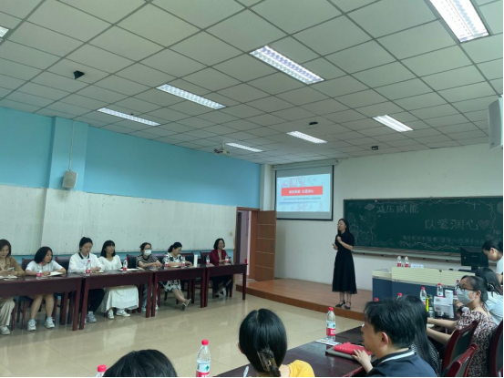 为了贯彻落实教育部等十七部门关于印发《全面加强和改进新时代学生心理健康工作专项行动计划(2023—2025年)》的通知(教体艺[2023]1号)精神,进一步提升学院心理育人工作质量,促进教师心理健康,提高教师幸福感,5月17日在实验楼105,学院开展以“减压赋能,以爱润心”为主题的心理健康讲座,讲座邀请到了国家二级心理咨询师鲁旭辉为主讲人,学院党总支书记常荣主持。本次讲座由智能科技学院主办,学院正能量·正青春工作室、工会小组承办,学院全体教职工参加。