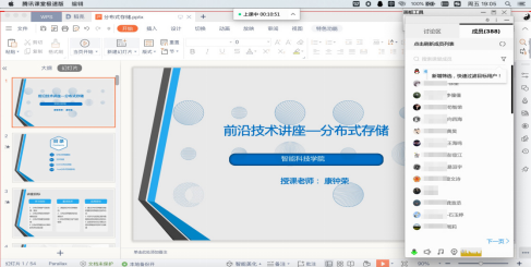 4月22日,智能科技学院教师康钟荣在腾讯课堂为2019级所有学生开展第七次线上讲座。本次讲座围绕云计算框架IaaS层中的分布式存储相关技术背景、行业现状以及主流架构等内容展开,本次讲座共有390多余师生参与。