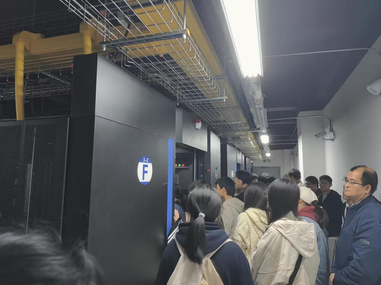 参观前,数据中心总工程师廖钢在总控中心向同学们介绍了大数据中心的建设背景、服务对象、服务方式和总体布局,让同学们大数据中心的整体情况有了基本了解。接着,廖钢和其他工程师分批次带领同学们深入参观了大数据中心的内部结构,包括柴油发电机房、冷冻站、业务机房和精密空调间,让同学们了解和感受到数据的庞大以及人工智能的魅力。