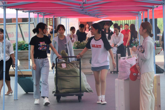 为保证迎新工作的顺利进行,学校特地安排运送新生行李的货车,往返于学校大门与宿舍楼栋,为新生报到提供便利。“同学,学院报到点在前面,我带你去”“同学你好,请有序排队,提前准备好报到材料”……迎新志愿者们不畏炎热,坚守岗位,为同学们热情指引、答疑解惑,成为校园里一抹靓丽的“志愿红”。辅导员和志愿者细心、贴心的服务,受到了新生和家长的一致称赞。
