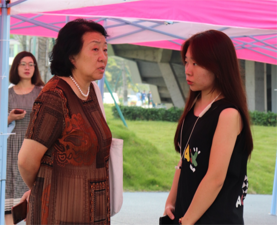 孟虹与志愿者沟通