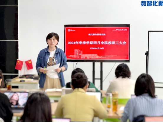 4月24日,现代服务管理学院举行本学期四月全院教职工大会。学院党总支书记倪娅、副院长高丹、院长助理刘宇出席本次大会,会议由高丹主持,全体教职工积极参与,共绘学院发展蓝图。