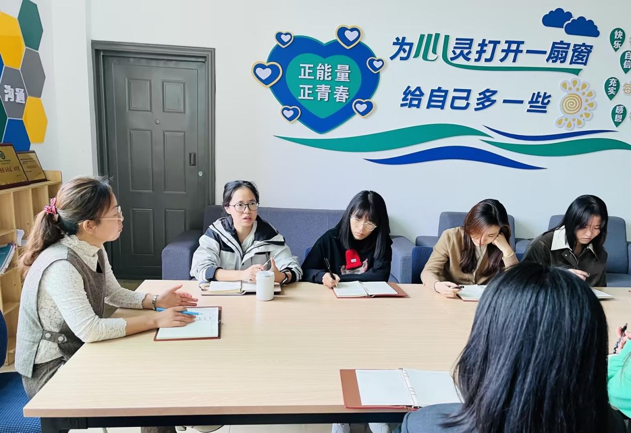 为了打通“三全育人”最后一公里,以立德树人为中心,凸显学生社区建设“围绕学生、关照学生、服务学生”的工作目标,强化文化浸润“一站式”学生社区建设,践行“一线规则”,10月17日下午,智能科技学院于实验楼的正能量·正青春心理工作室开展了基于文化浸润理念下的“一站式”学生社区建设研讨学习。此次研讨学习由常荣主持,学院学工综合办公室全体教师参加。
