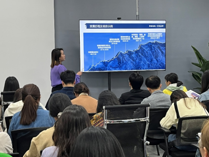 此次招聘讲座由拓银基金销售总监袁静为同学们就公司基本情况、主营业务以及招聘人才要求等方面进行全面讲解。袁静提到拓银基金是一个包容开放的公司,拥有完善的培训体系、优渥的客户资源以及透明的晋升通道,只要有能力并愿意学习,那么拓银基金不仅仅能给同学们提供合适岗位,更会让同学们收获到行业经验与资源。