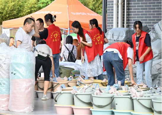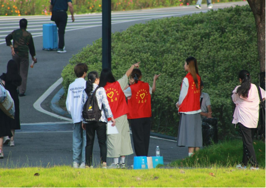 迎新现场,志愿者们戴上工作牌,穿上红色的工作服全心全意地为新同学们服务,主动协助新生同学们搬运行李,展现着天府学院和谐美好、“以心迎新”的互助之情。志愿者们以最饱满的热情和最真诚的态度引导新生们到宿舍楼报到,同时耐心地回答新生同学和家长的问题,用温暖的笑容感染着新同学。