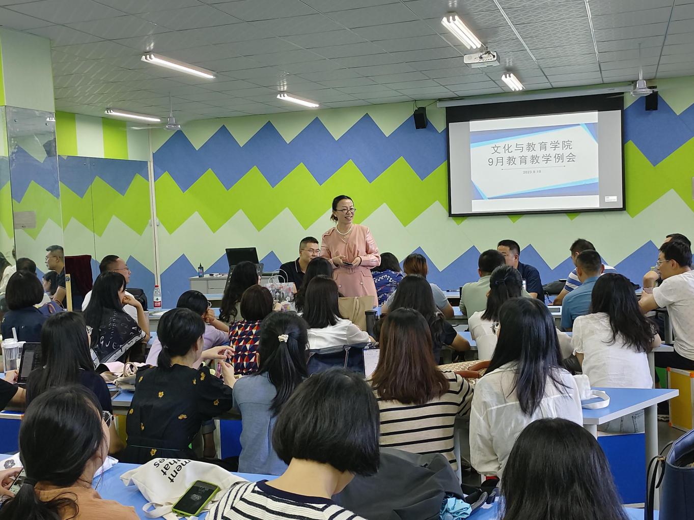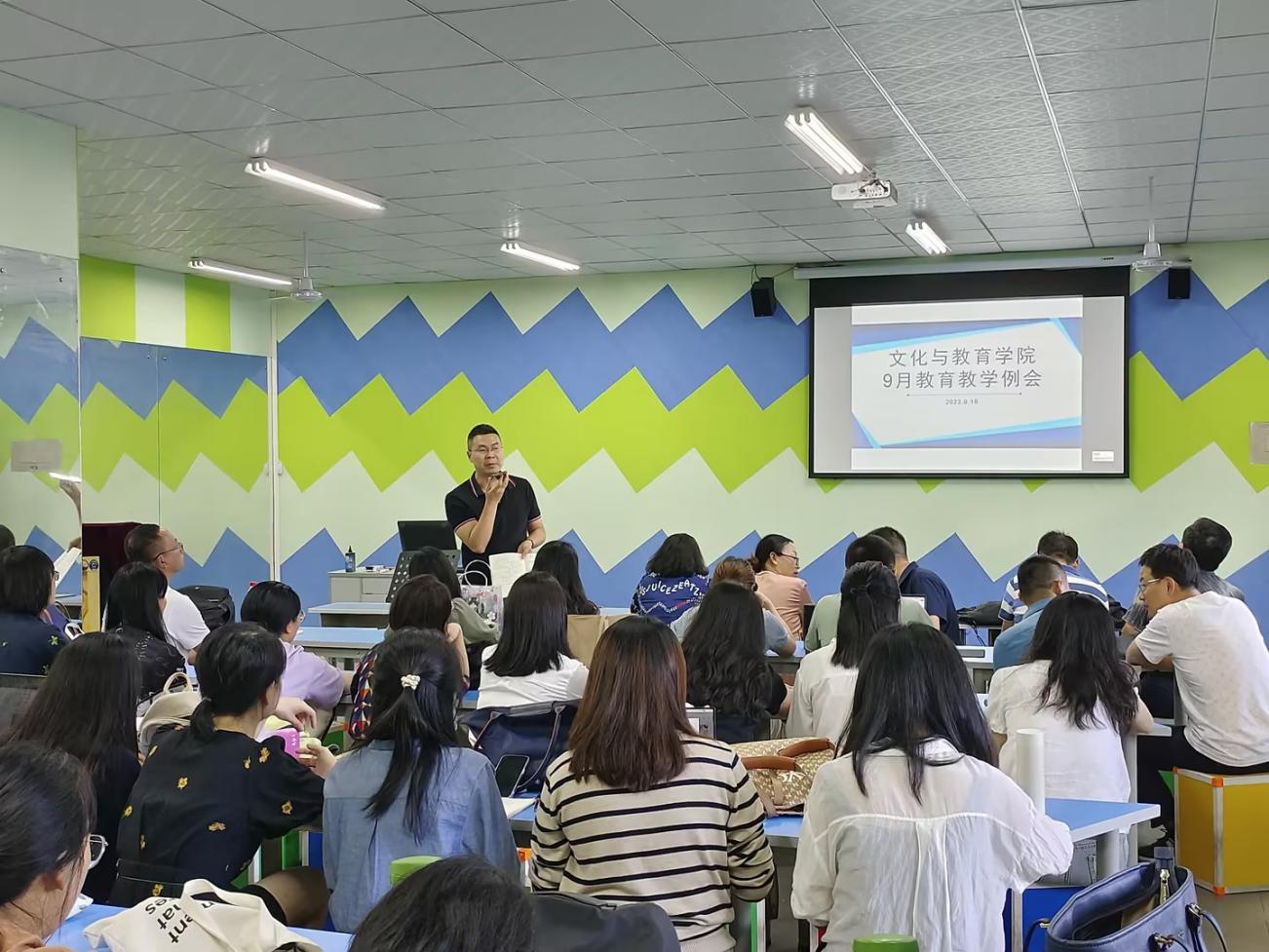 9月19日下午,文化与教育学院在三教声乐室召开了9月教育教学工作会议,本次会议由学院党总支书记邓毅主持,学院执行院长史正刚、副院长史海静、张维及全院教职工参加。