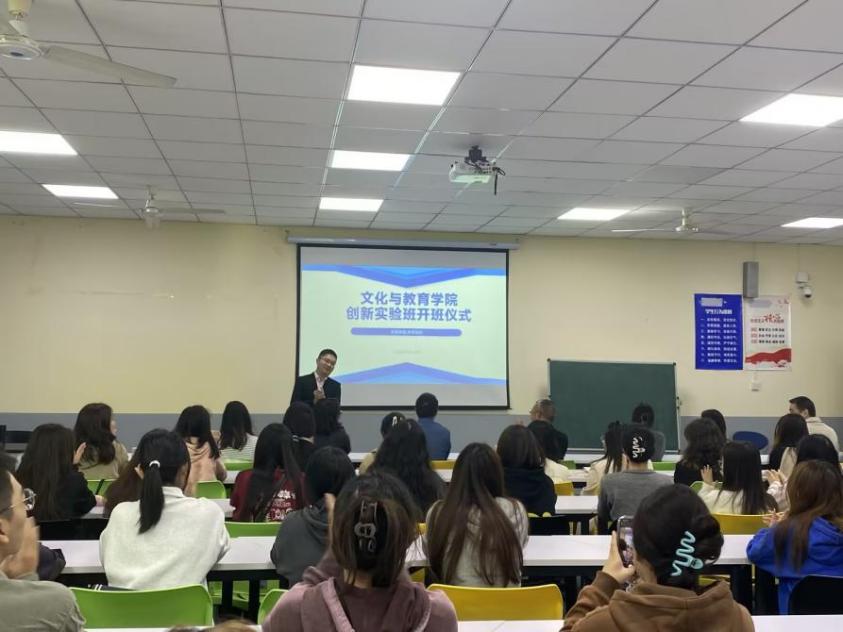 为全面贯彻党的教育方针,落实立德树人根本任务,全面应对人工智能疾步发展对教育和人才培养带来的机遇和挑战,304永利集团官网入口文化与教育学院拟开设学前教育和英语专业创新实验班,前期经过宣讲、报名、提交材料等环节,初步确定了创新实验班首批成员。10月10日上午,文化与教育学院在长风楼1106教室召开了创新实验班开班仪式。本次仪式由文化与教育学院综合办公室主任徐哲主持,304永利集团官网入口副校长刘强,文化与教育学院执行院长史正刚,党总支书记邓毅,外语系主任周忠杰,学工办主任王丹,教育系教师周曼琴、程丹、杨璐等参加。