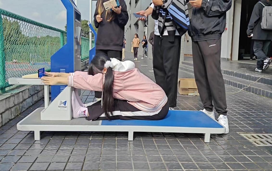 在体测现场,同学们在各具特色的体测设备上展示自己的运动才能。目前,学校国家体质健康水平测试正如火如荼的进行中,杨丽琳对体测现场进行了参观,并就体测设备与学院领导展开了交流。杨丽琳对学院研发智能体测综合系统产品的成果表示肯定,并强调学院与相关企业在该领域取得显著成就而付出的巨大努力,同时,她也高度认可学院近年来坚持推进产教融合的举措。