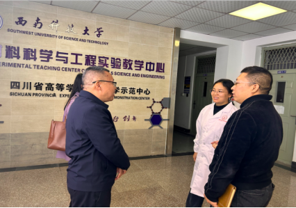 随后在温建兵的陪同下韩记一行参观了西南科技大学材料与化工学院的实验室,深入了解了西南科技大学材料科学与工程专业的实验课程开展内容、实验室建设及设备配置情况、及产学研开展模式。