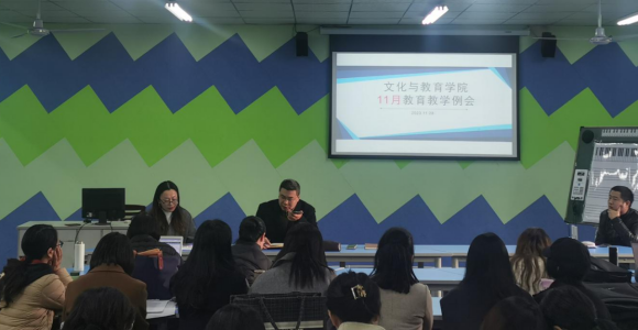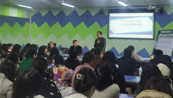 11月28日下午,文化与教育学院在三教声乐室召开了11月教育教学工作会议,学院党总支书记邓毅、执行院长史正刚、副院长史海静、张维及全体教职工参加。