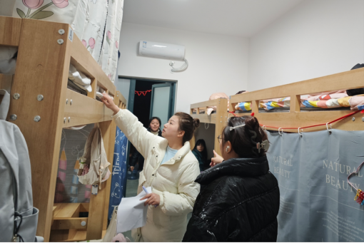 3月3日晚,学院党总支书记陈永清带领德阳校区全体辅导员深入学生宿舍,开展新学期第一次宿舍走访工作,全面检查宿舍安全、卫生情况,了解学生新学期生活状况,为学生带去关心和温暖。陈永清问候同学们的同时,了解他们在学习生活中遇到的问题,耐心为他们答疑解惑,提醒大家要劳逸结合,提高自我管理能力,关注自身的身心健康。辅导员认真核查宿舍人员变化情况,叮嘱宿舍成员要友爱互助,重视宿舍卫生,树立优良寝风,并尽快投入学习状态,适应新学期生活。