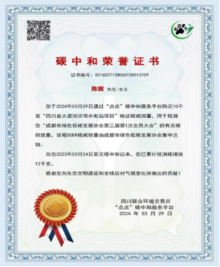 碳中和荣誉证书
