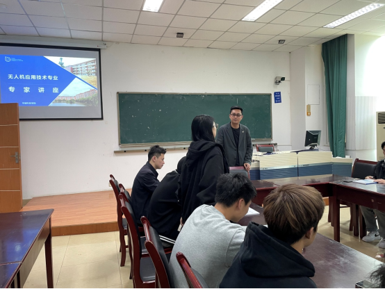 为加强同学们对无人机技术的专业认知,推进学院无人机应用技术专业建设,4月8日下午,智能科技学院在实验楼105开展无人机应用技术专家讲座,并于实验楼303开展专业发展座谈会。此次讲座由航空航天模型国家级裁判员、全国航空航天模型(无人机)教练员、中国航空运动协会委任技术代表陈洋杰主讲,学院副院长陈小宁、四川福德机器人股份有限公司董事吴健、无人机专业任课教师秦淼和丁永鹏、辅导员赵敏及2023级专无人机应用技术专业全体学生参加。