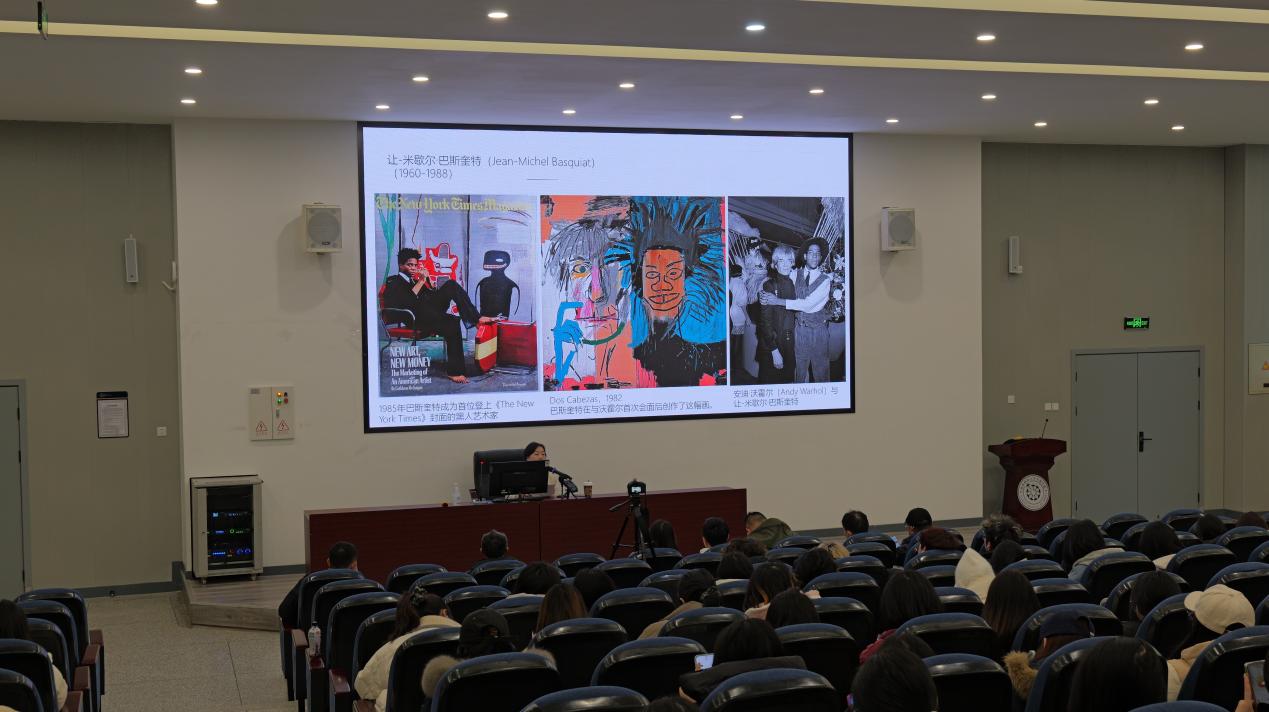 关于国际涂鸦艺术发展领域,晏燕老师着重剖析了多位具有代表性艺术家的创作实践:波洛克的行动绘画为后续的艺术形式奠定了基础;安迪・沃霍尔的经典之作描绘出美国20世纪70年代消费主义的鼎盛景象;巴斯奎特将黑人身份特质与波普艺术相融合,实现了从街头少年到艺术巨星的转变。此外,她还以承载民众诉求与历史记忆的柏林墙涂鸦、开辟高效创作传播新范式的纽约模板涂鸦为例,使师生对国际涂鸦艺术的多元发展有了直观的认知。