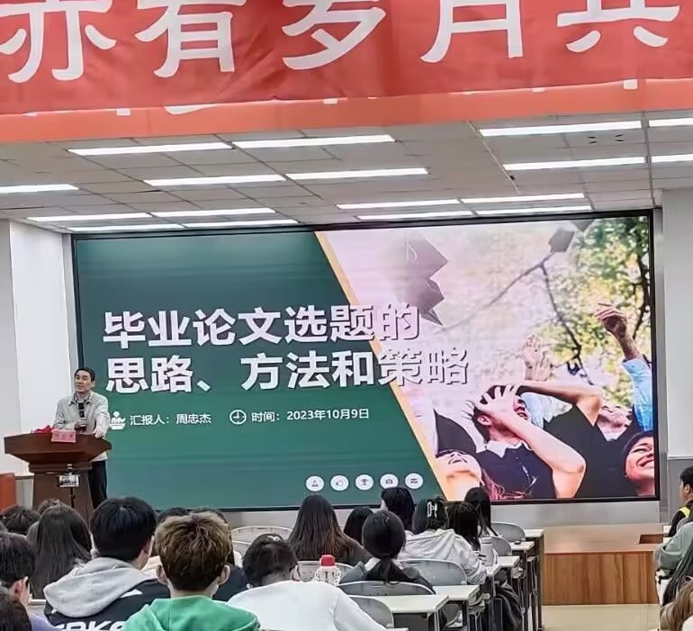 毕业论文作为课程体系的重要组成部分,选题是写论文的第一步,也是最关键的一步。为了提升同学们的论文写作能力,拓展其论文思维,文化与教育学院特邀请外语系主任周忠杰副教授于10月9日开展了“关于论文的若干思考”主题讲座活动。此次活动面向文化与教育学院全体学生,共有150人参加。讲座中,周忠杰首先分享了关于“毕业论文选题”方面的四点思考——论文选题的重要性、题目的来源、论文选题的原则和思路以及论文选题的工具,...